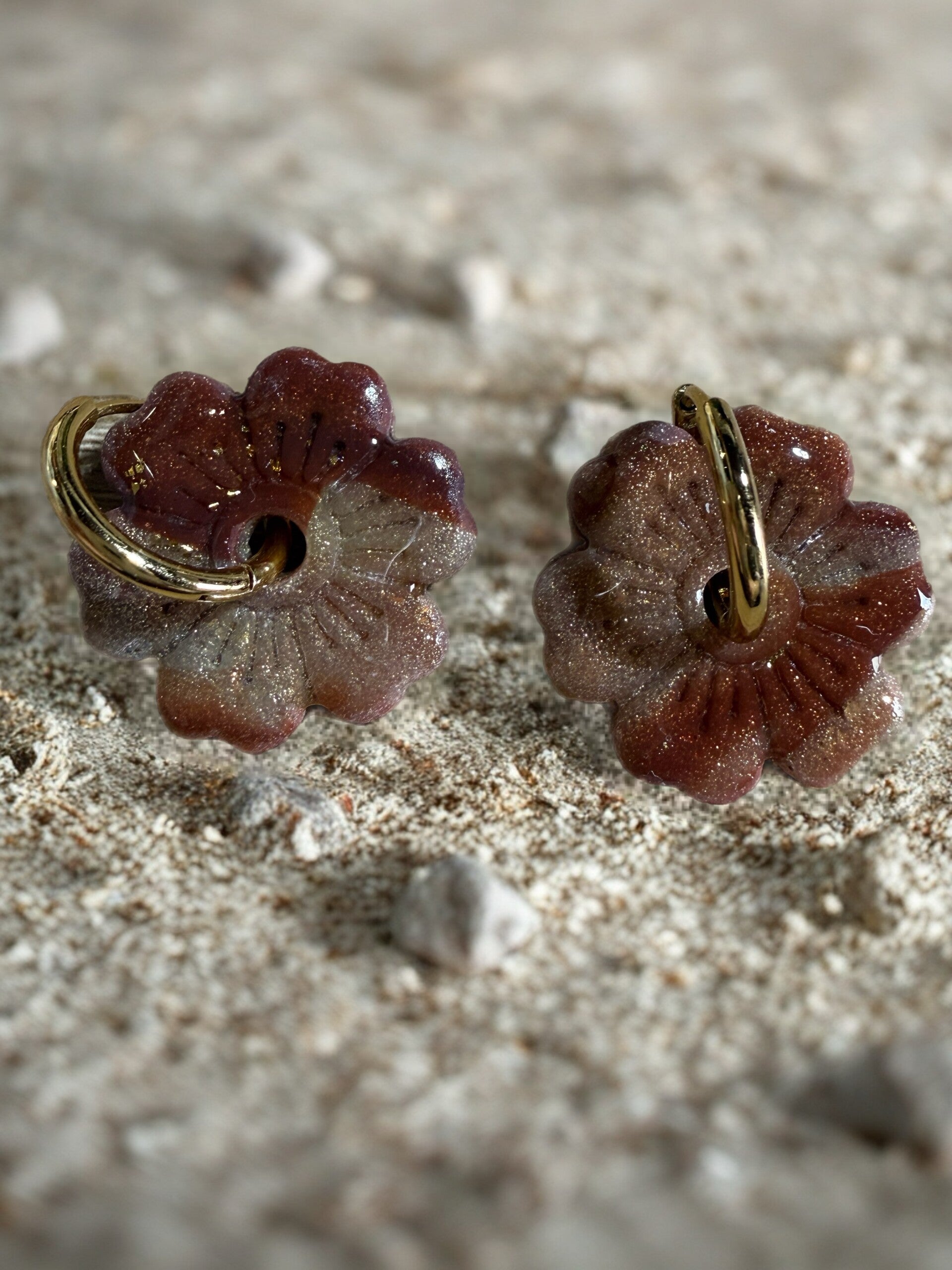 Pampille en pâte polymere sans creole / marbrée marron